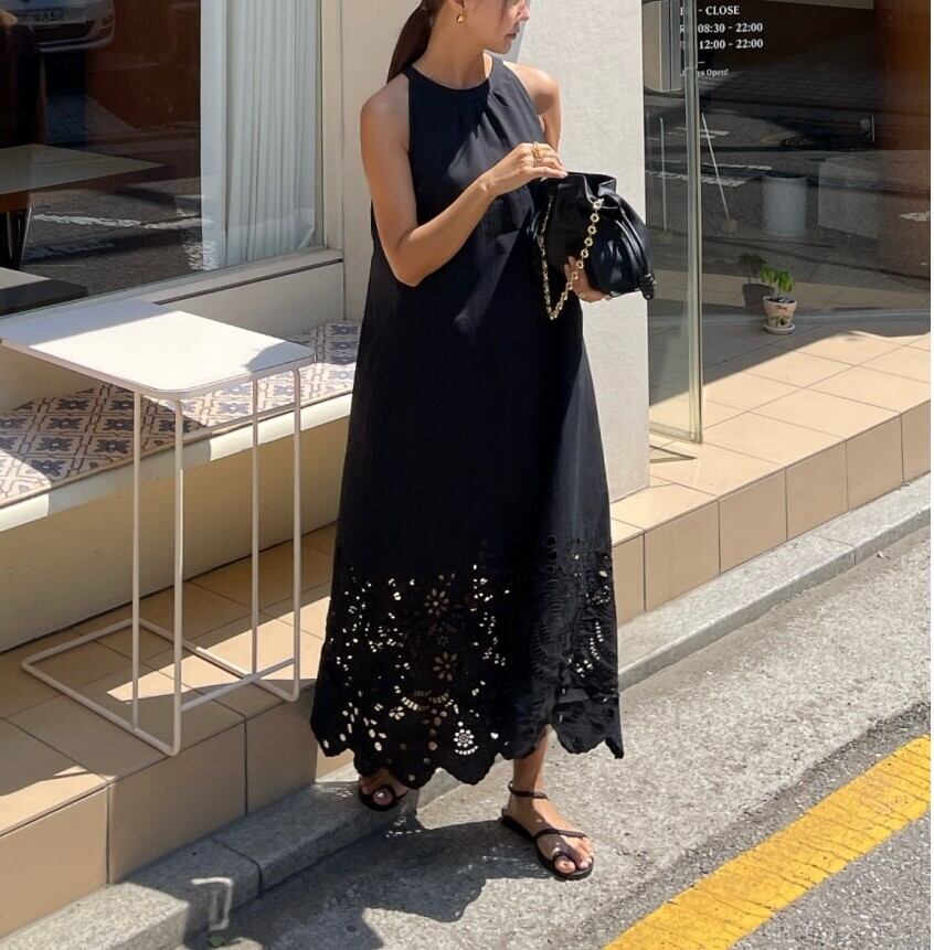 ぜひ、この「光をまとう、カットワークブラックワンピ」をお手元に迎えて、新たなスタイルを楽しんでください!