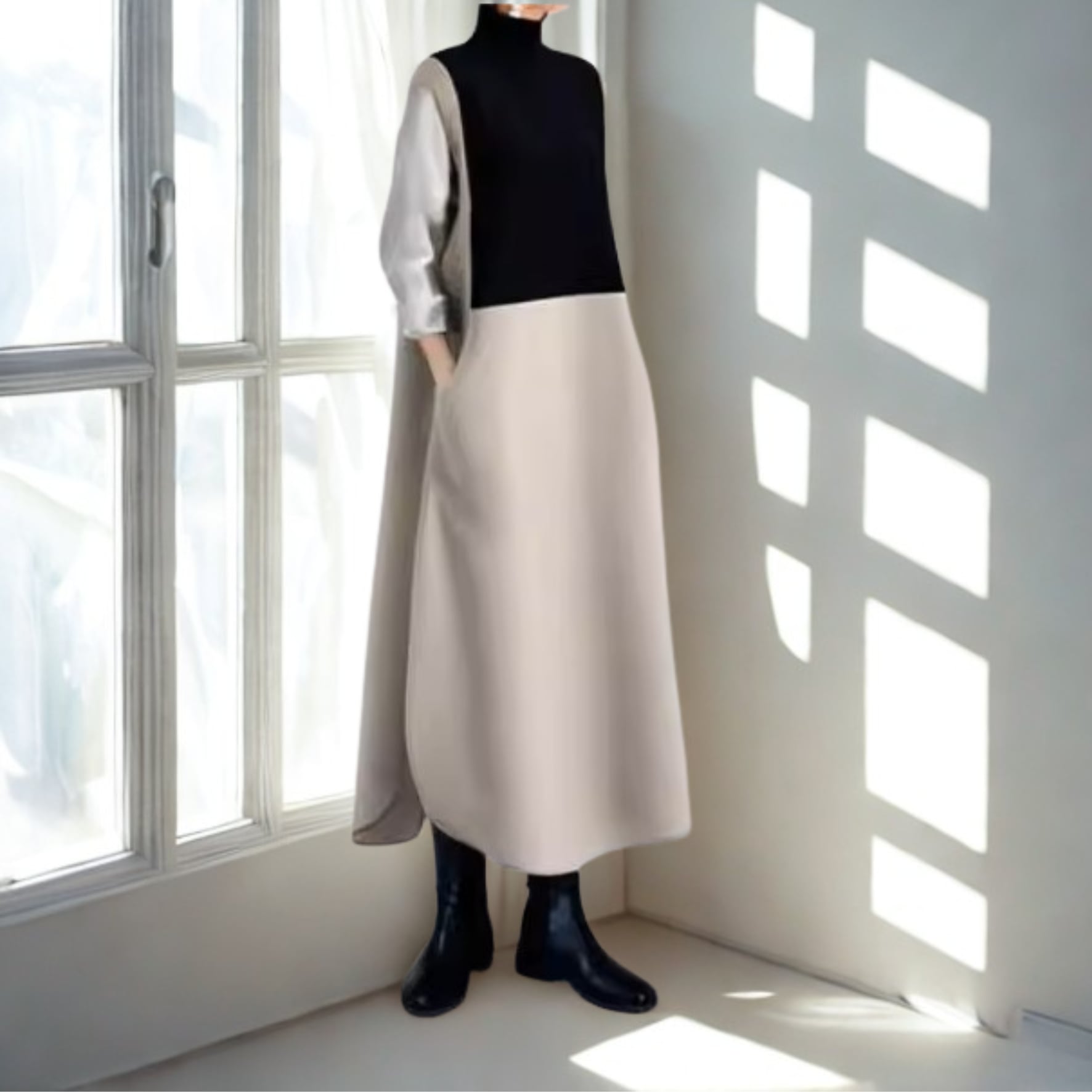 **大人の魅力を引き出す バイカラー Aラインロングワンピース**